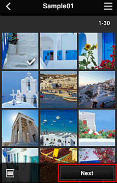 En la lista de imágenes que se muestra, seleccione la imagen que desee imprimir y, a continuación, seleccione Siguiente (Next)