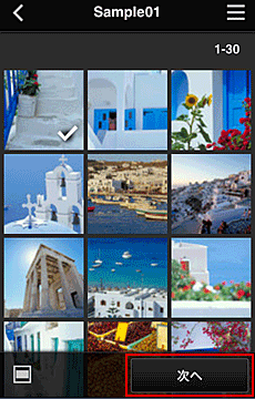 表示された画像一覧から、印刷したい画像を選び、[次へ]を選ぶ