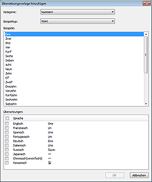 Das Dialogfeld Übersetzungsvorlage hinzufügen wird angezeigt.