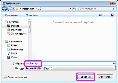 Das erstellte Poster wird zur exklusiven Verwendung mit PosterArtist als Datei mit der Dateierweiterung ".cpfx2" gespeichert.