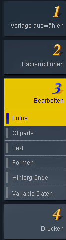 In PosterArtist können Poster auf einfache Weise erstellt werden, indem Sie die Tasks 1 bis 4 wie folgt nacheinander ausführen.
