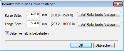 3. Geben Sie einen Wert in das Feld Kurze Seite oder Lange Seite ein. Klicken Sie andernfalls auf Auf Rollenbreite festlegen, und geben Sie die Originalgröße an.