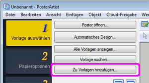 Sie können auch selbst erstellte Poster und Bilder in der Bibliothek Ihres Computers registrieren. Die Registrierung der von Ihnen üblicherweise verwendeten Grafiken erleichtert die spätere Verwendung der Grafik bei der Postergestaltung.