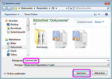 Die Grafik wird als PosterArtist-Exportdatei mit der Dateierweiterung ".cptx" gespeichert.