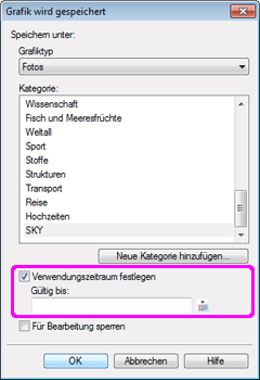 7. Aktivieren Sie zum Festlegen einer Zeitbeschränkung für die Verwendung des Bilds die Option Verwendungszeitraum festlegen, um Gültig bis anzugeben.