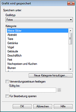 3. Wählen Sie unter Kategorie eine Kategorie, in der das Bild gespeichert werden soll.