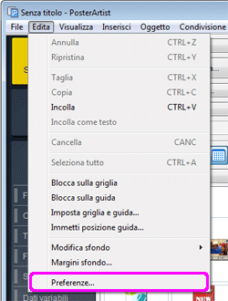 Per una panoramica dei menu disponibili in PosterArtist, vedere "Comandi."