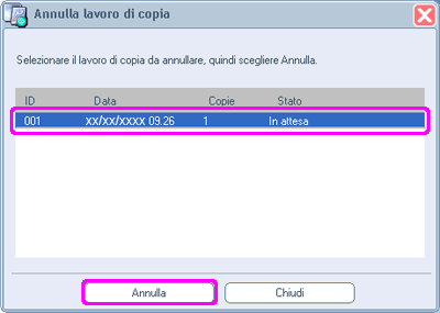 2) Selezionare il lavoro e fare clic su Annulla.
