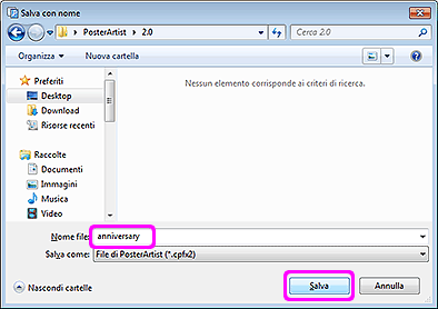 Il poster creato viene salvato come file con estensione ".cpfx2" da utilizzare esclusivamente con PosterArtist.