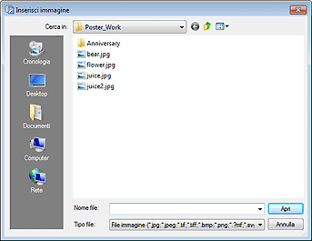 3) Selezionare il file immagine che si desidera inserire nel poster.