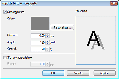 Viene visualizzata la finestra di dialogo Imposta testo ombreggiato.