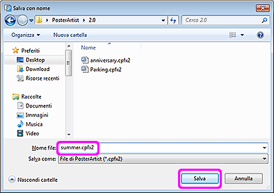 La finestra di dialogo Salva con nome viene chiusa e il poster creato viene salvato come file con estensione ".cpfx2" da utilizzare esclusivamente con PosterArtist.
