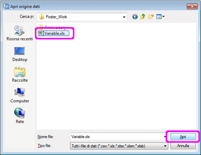 Viene visualizzata la finestra di dialogo Apri origine dati.