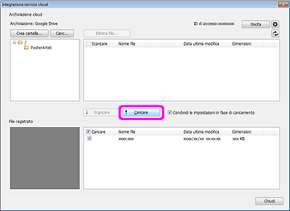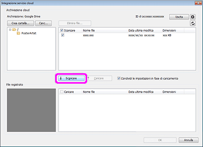 Per scaricare un file poster caricato nell'archiviazione cloud, consultare la sezione "Download di poster/materiale dal cloud."