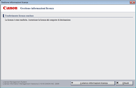 Il trasferimento della licenza consente di autenticare nuovamente la licenza sul computer di destinazione in caso di guasto del computer in uso o di sostituzione dello stesso.