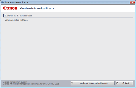La restituzione delle licenze richiede la connessione Internet e la versione di Internet Explorer 6 e versioni successive. Accertarsi inoltre che il computer sia connesso a Internet.