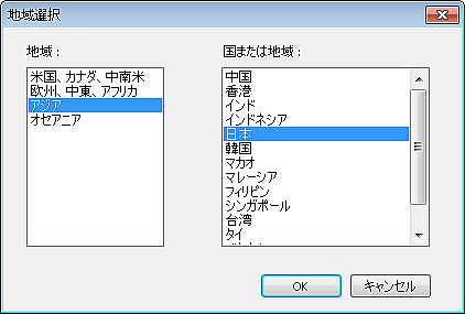 [地域選択]ダイアログボックスが表示され、[地域]と[国または地域]を設定できます。
