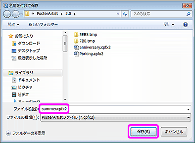 ポスターを保存する場合、通常は、拡張子「.cpfx2」が付いたPosterArtist専用のファイルとして保存されます。