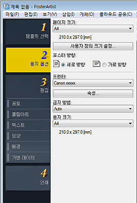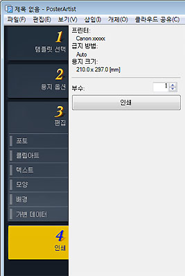 PosterArtist에는 포스터 작성에 필요한 4단계의 작업이 준비되어 있습니다.