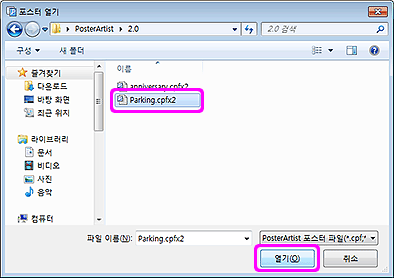 이미 작성해 둔 포스터를 사용할 경우에는 다음과 같은 순서로 포스터 파일을 엽니다.