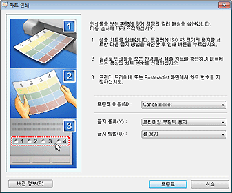 시험 인쇄에서 사용할 프린터 및 용지 크기는 「PosterArtist 설정」을 참조하십시오.