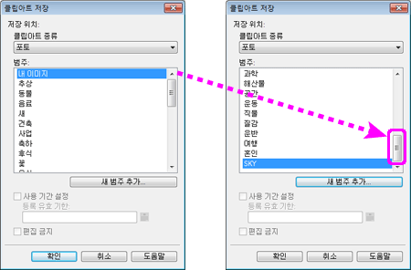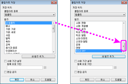 3) 복사한 클립아트(아트워크)를 붙여 넣을 범주를 선택합니다.