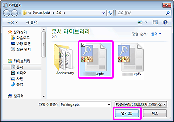 다른 컴퓨터의 PosterArtist에서 파일 내보내기로 작성한 파일을 자신의 컴퓨터의 PosterArtist로 가져올 수 있습니다. 가져온 파일은 내보낼 때 지정한 범주에 클립아트(아트워크)로 등록되어 다른 클립아트(아트워크)와 같이 사용할 수 있습니다.