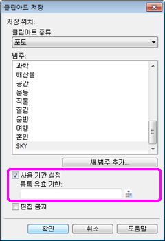 4. 등록할 이미지를 사용할 수 있는 기한을 설정할 경우에는 [사용 기간 설정] 확인란을 선택하고 [등록 유효 기한]을 설정합니다.
