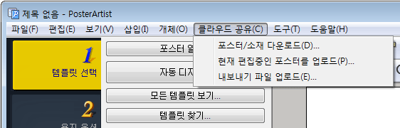 1. [클라우드 공유] 메뉴에서 [현재 편집 중인 포스터 업로드]를 선택합니다.
