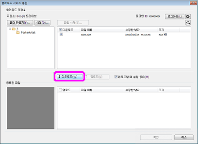 클라우드 스토리지에 업로드한 포스터 파일을 다운로드하려면 「클라우드에서 포스터/자료 다운로드하기」를 참조하십시오.