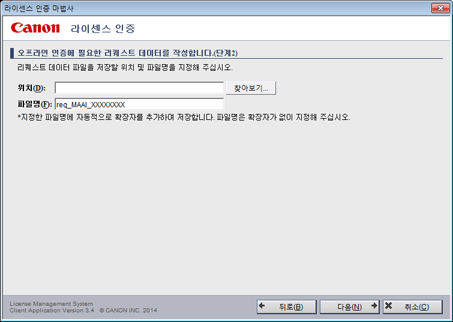 2. 다음과 같은 화면이 표시됩니다. 리퀘스트 데이터 파일을 저장할 위치를 지정하고 [다음] 단추를 클릭합니다.