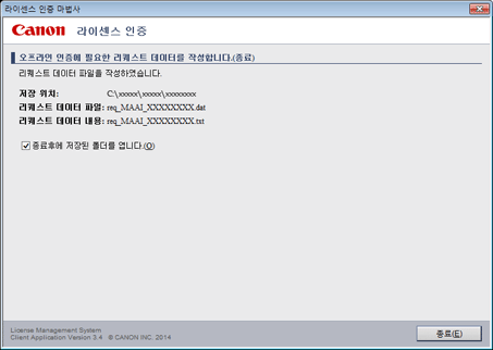 3. 다음과 같은 화면이 표시됩니다. 내용을 확인하고 [종료] 단추를 클릭합니다.