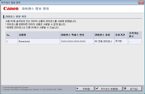여기에서는 사용 중인 컴퓨터에 설치된 PosterArtist의 라이센스를 서버로 반환하는 방법에 대해 설명합니다.
