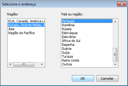 A caixa de diálogo Selecione o endereço é exibida e você pode especificar a Região e o País ou região.
