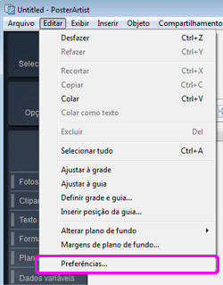 Para obter uma visão geral dos menus disponíveis no PosterArtist, consulte "Comandos".