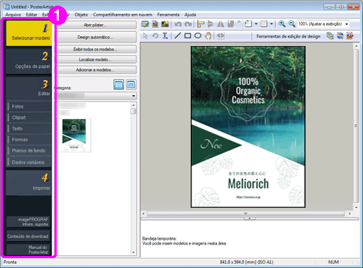 Início e desligamento do PosterArtist Estrutura de tela do PosterArtist |