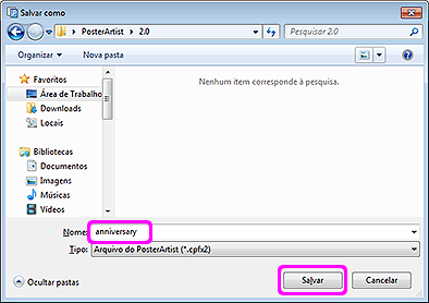 O pôster que você criou é salvo como um arquivo exclusivamente para uso com o PosterArtist, com uma extensão de arquivo ".cpfx2".