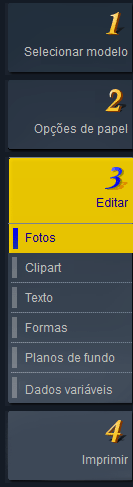 No PosterArtist, você pode criar pôsteres simplesmente completando de 1 a 4 tarefas, uma após a outra, conforme segue.
