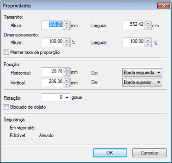 2) Em Altura (ou Largura) em Tamanho, especifique a altura do objeto (ou a largura).