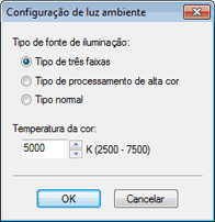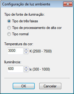 Para registrar as configurações de luz ambiente ao especificar a fonte de luz e temperatura da cor, na lista de Configurações de luz ambiente, selecione Configurações personalizadas e especifique a fonte de luz e a temperatura da cor.