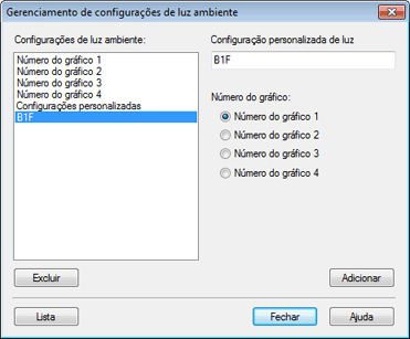 A caixa de diálogo Lista de configurações de luz ambiente é exibida.