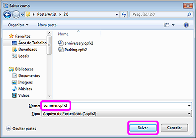 A caixa de diálogo Salvar como é fechada e o pôster que você criou é salvo como um arquivo exclusivamente para uso com o PosterArtist, com uma extensão de arquivo ".cpfx2".