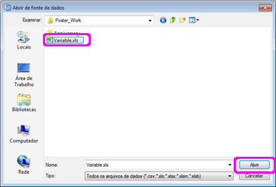 Use arquivos de Excel (com extensão ".xls", ".xlsx", ".xlsm" ou ".xlsb") ou arquivos de valores separados por vírgula (com a extensão ".csv") para a impressão variável.