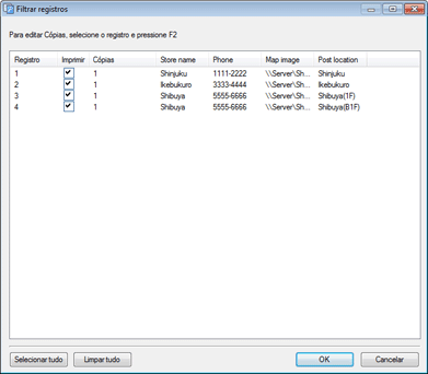 10. Para limitar os dados a serem usados ou especificar a quantidade de impressão, clique em Filtrar registros para exibir a caixa de diálogo Filtrar registros. Por padrão, todos os dados serão usados na impressão variável.