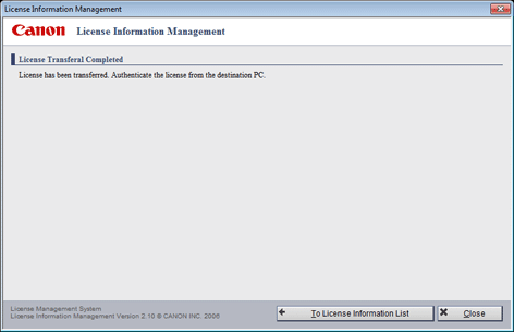 1. Na tela License Information Management clique no botão Return para abrir a tela, conforme mostrado abaixo. Verifique a tela e clique no botão Return License.