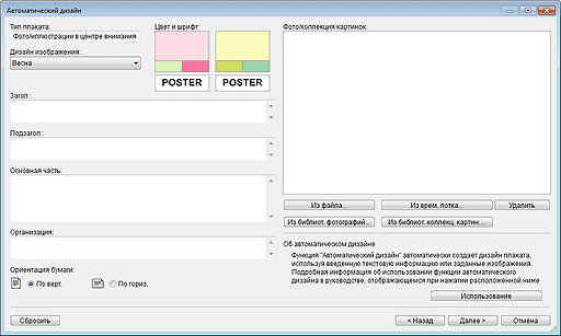 4. В поле Дизайн изображения выберите дизайн изображения создаваемого плаката.