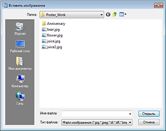 3) Выберите файл изображения, которое нужно добавить на плакат.