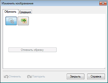 В этом окне можно выбрать область обрезания, задать прозрачность или коррекцию наклона или применить настройки градации.