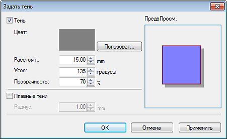 9. Чтобы смягчить тень, поставьте флажок Плавные тени, а в поле Радиус укажите значение смягчения. Введите значение или нажимайте кнопки