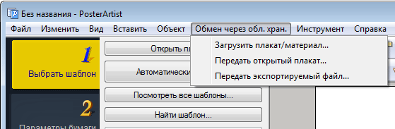 1. В меню Обмен через обл. хран. выберите Передать открытый плакат.